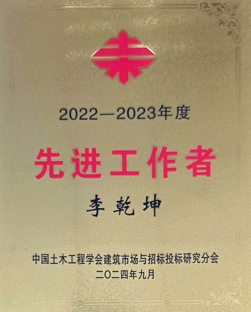 9月27日,公司受邀參加第五屆全國建設(shè)工程招標代理機構(gòu)高層論壇會議,并榮獲中國土木工程學(xué)會建筑市場與招標投標研究分會頒發(fā)的“2022-2023年度先進集體”,公司副總經(jīng)理李乾坤榮獲“2022-2023年度先進工作者”。